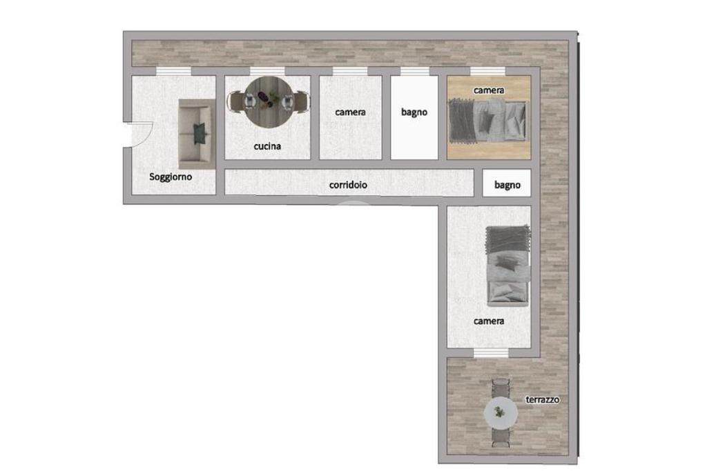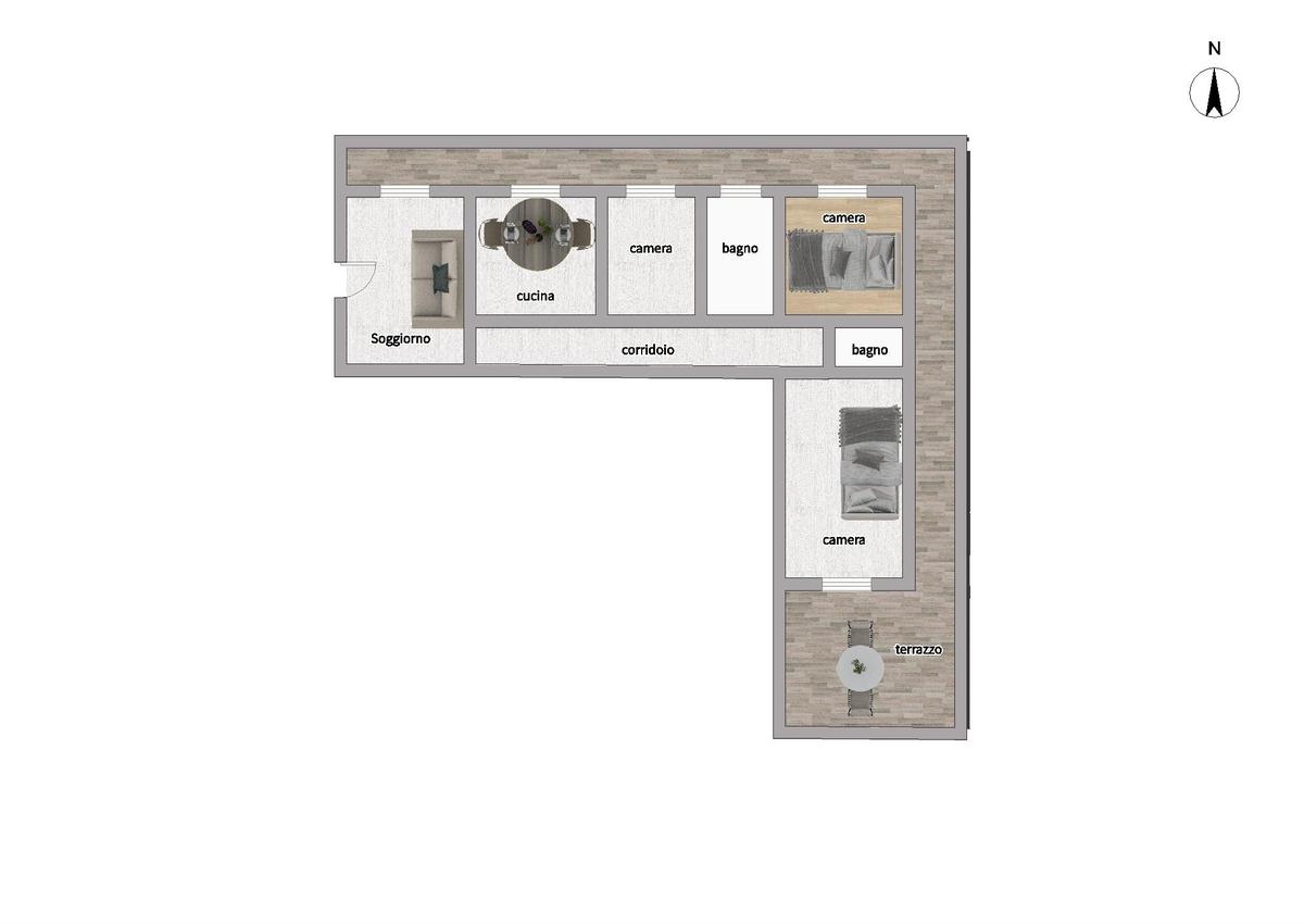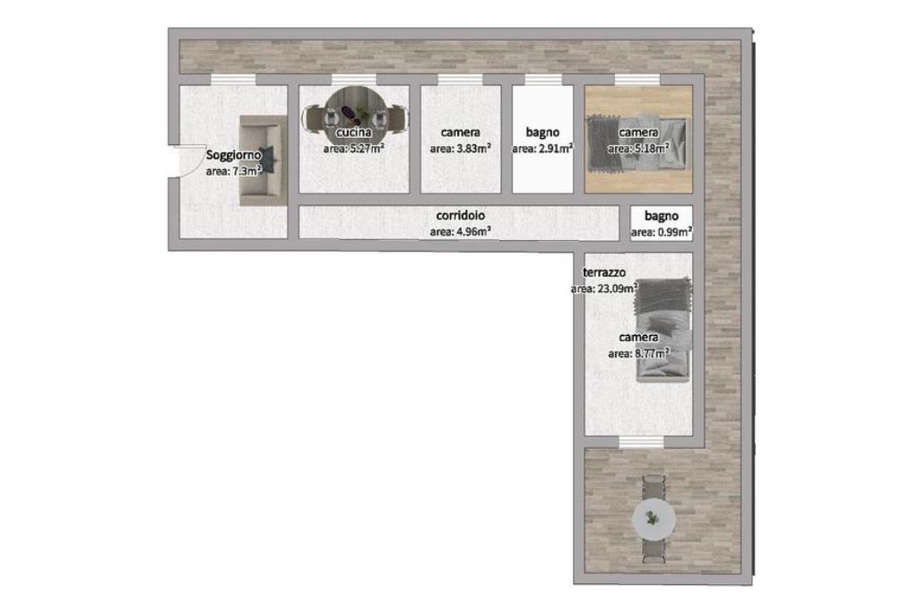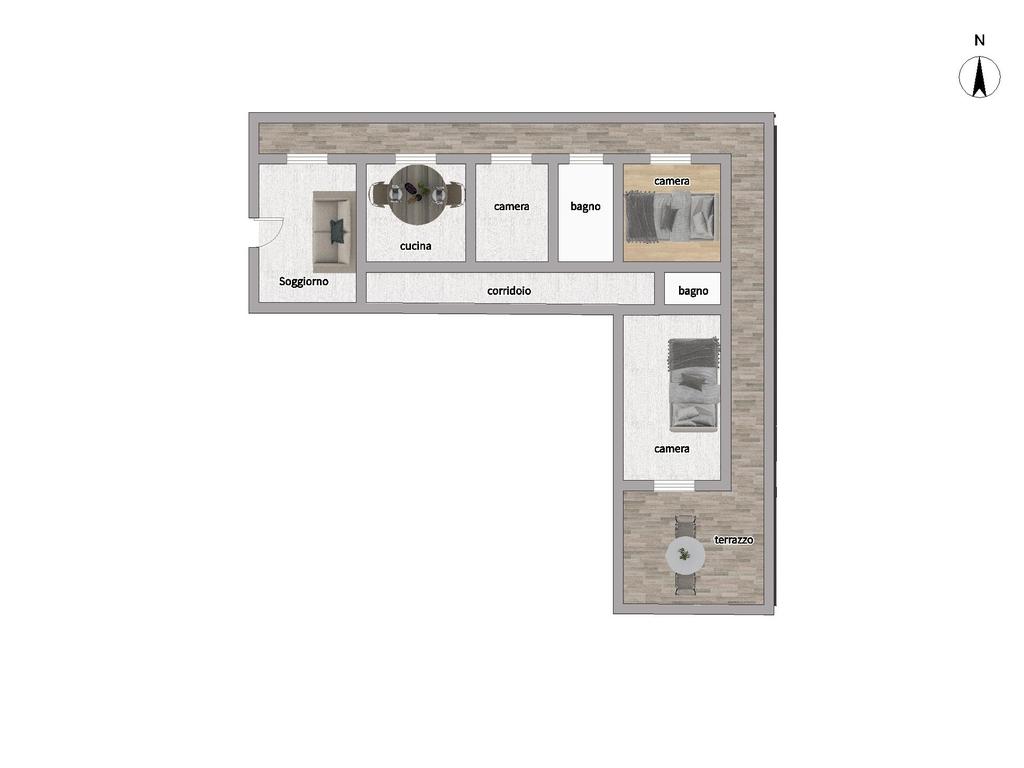 Tutte le camere hanno accesso ai balconi terrazzati, caratterizzati da una doppia esposizione che garantisce ottima luminosità e una piacevole ventilazione naturale.